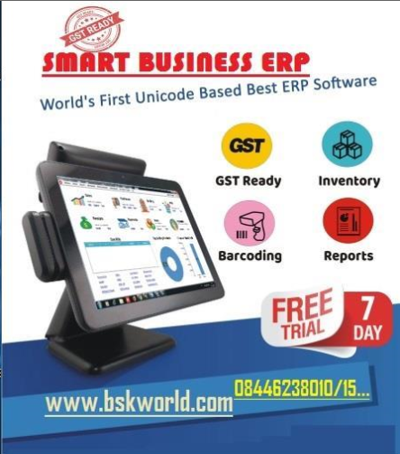 This Business ERP Its a Complete GST / Barcode,E-Way Bill Enables Software Fully Automatic Advanced with Order and Outstanding Facility, Latest Technology with E Mail Sender and Whatsapp, SMS, Business Growing Reports and Much more,Specially Designed For Multiple Business like Mobiles Stores IMEI Tracking , Serial Number Tracking, Traders,Supermarkets, Garments, Textiles, Tyres Agencies, Automobile Stores, Computers Shopee, Electronics Stores, FMCG Dealers, Retailers, Wholesalers , Distributors , Manufacturers, Automobile , Spare Parts , Books & Stationery Stores, Bakeries, Grain Merchant, Adat, Commission Agents Etc.